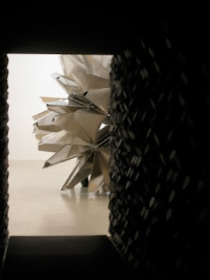 These photos were taken last week at the Take Your Time exhibition of Olafur Eliasson‘s work. In the shots above we were in a darkened room where a fine spray of mist was falling from the ceiling. It looked incredible and was a magnet for children.