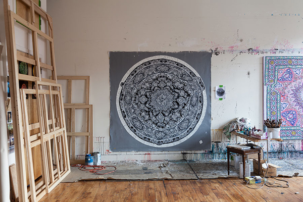 Antonio Santín is a Spanish-born artist who lives and works in Bushwick, New York. I came across his rug series of paintings and was instantly captivated by the realism and detail. As I was drawn into the work, I had a growing sense of unease as I looked beyond the beautifully rendered pattern, light and shade to register the human forms hidden beneath.