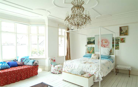Large light white rooms with eclectic decoration and colourful splashes. Perfect.